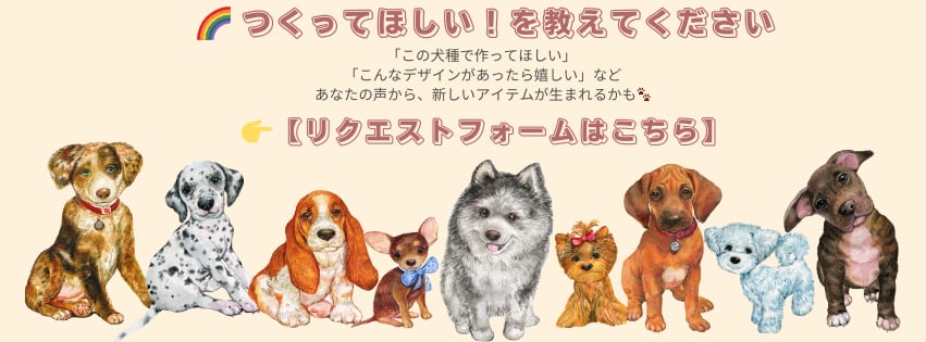 🧡 デザインリクエスト受付中! 「こんな犬種のアイテムが欲しい」 「こんなデザインがあったら嬉しい」などお気軽にご要望をお聞かせください🐶🌺