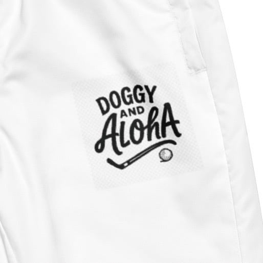 “DOGGY AND ALOHA”のロゴが、シンプルなデザインに遊び心をプラス。