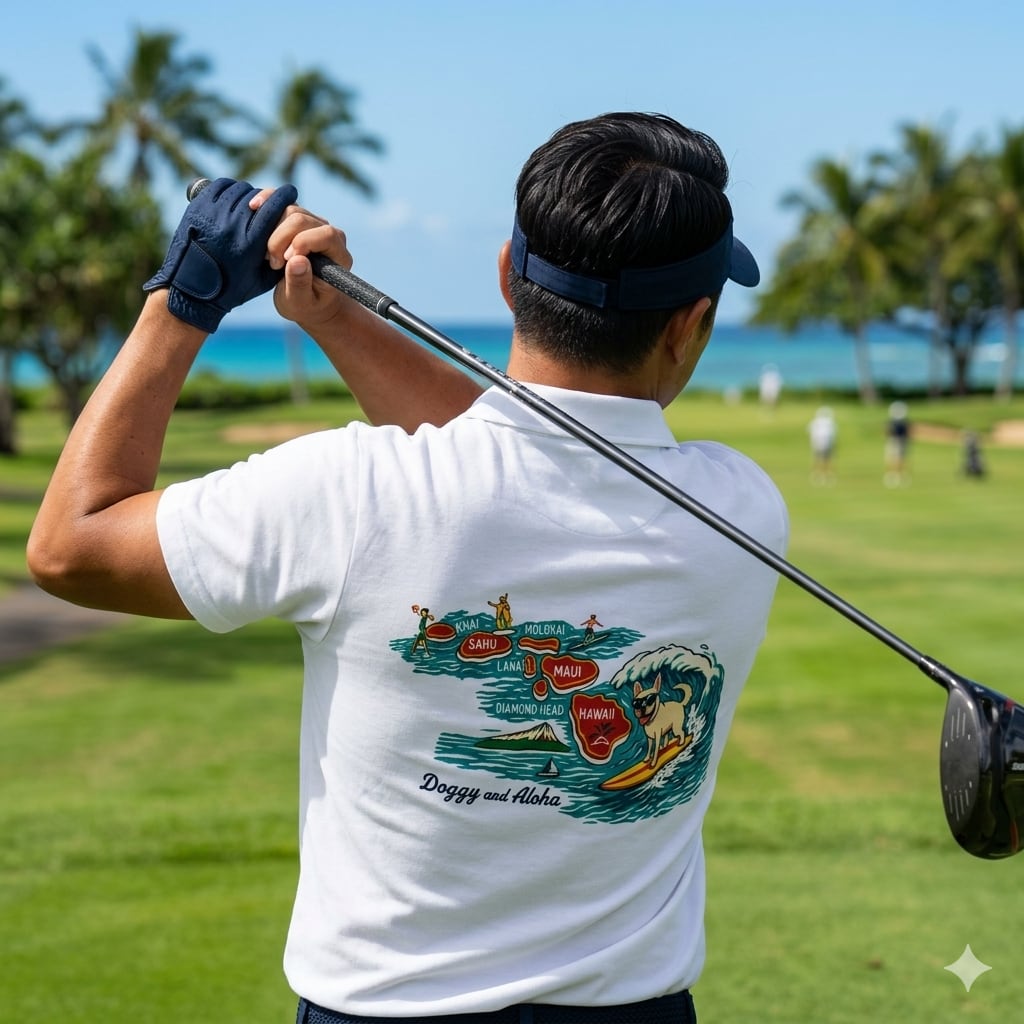 ハワイ諸島 フレンチブルドッグ ゴルフメンズポロシャツDA0075